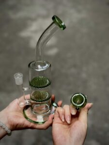 Màu sắc: Như trong hình, boong có sự phối hợp giữa thủy tinh trong suốt và các chi tiết màu xanh lá, đặc biệt là ở phần percolator và bowl. Màu sắc này giúp boong trông tinh tế và hiện đại hơn, đồng thời tạo điểm nhấn thẩm mỹ.