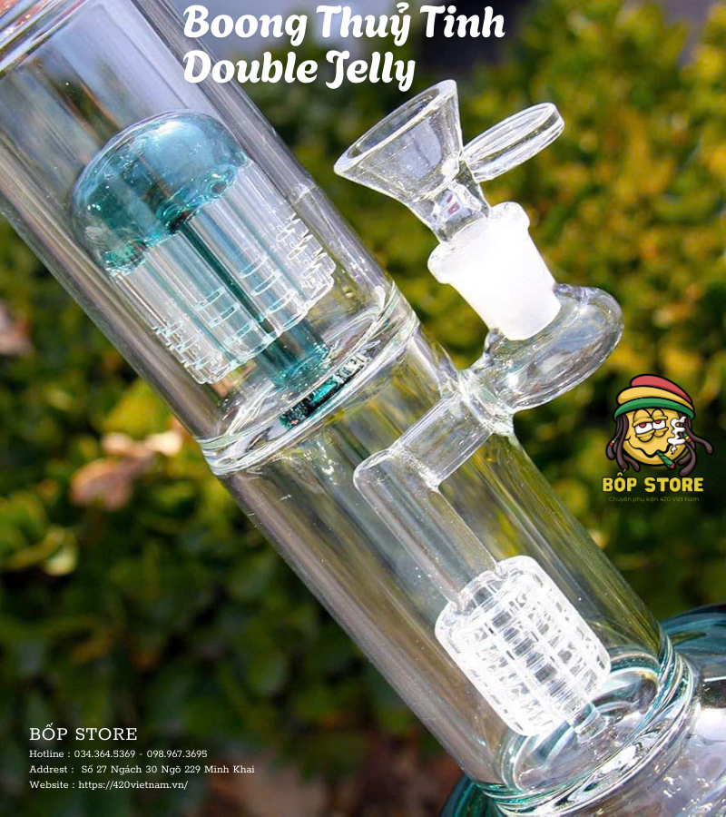 Điểm nhấn đáng giá nhất của chiếc Boong Thuỷ Tinh Double Jelly nằm ở hai bộ lọc sứa (Jellyfish Perc) được xếp chồng lên nhau bên trong thân bình. Đây là một trong những hệ thống lọc phức tạp và hiệu quả nhất trong giới phụ kiện khói.