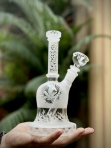 Hình dáng đặc trưng: Boong Thủy Tinh Ringging có thiết kế đặc biệt với phần thân boong gồm các vòng (rings) nổi bật, thường là các vòng thủy tinh uốn lượn, tạo cảm giác độc đáo và bắt mắt.