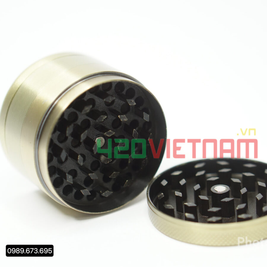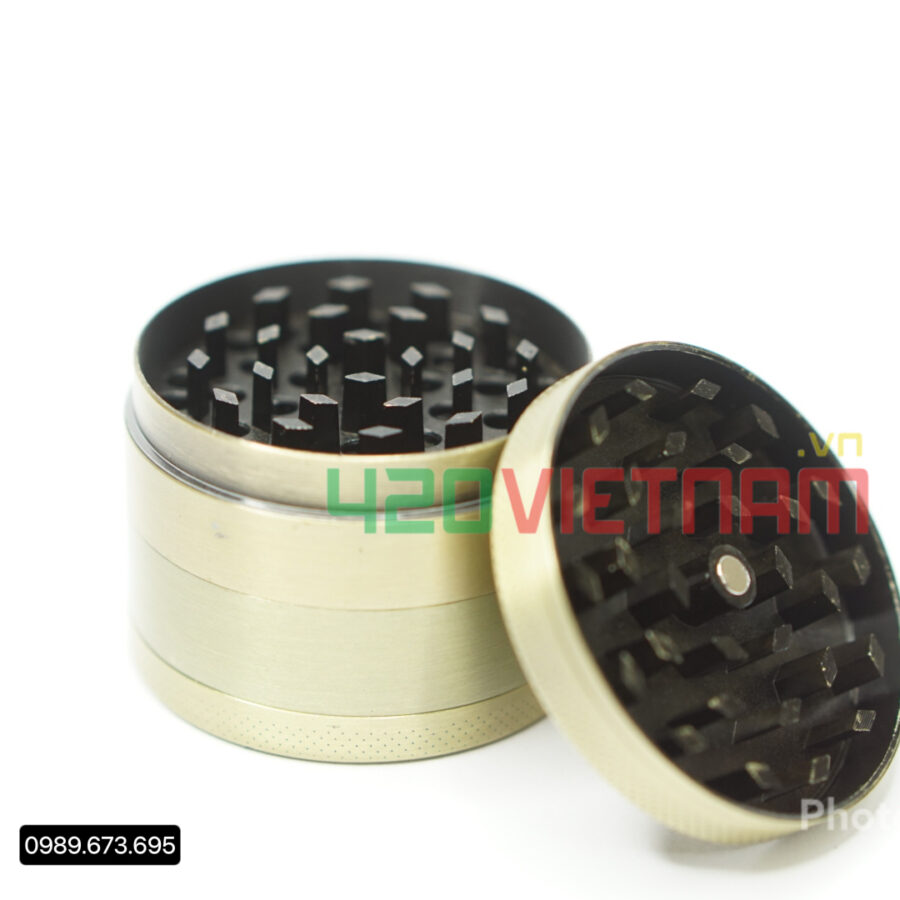 Cối Xay Leaf Gold Grinders có 4 mảnh và 3 tầng, có răng hình kim cương để xay mịn và có ngăn cất giữ khi còn thừa thảo dược, đặc biệt nhỏ gọn có thể bỏ trong túi và luôn có sẵn hàng tại 420vietnam.