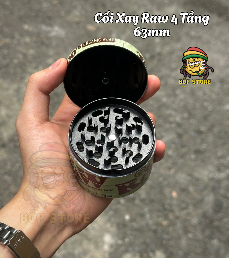 Vật Liệu Cao Cấp: Cối Xay Raw 4 Tầng 63mm được chế tác từ kim loại cao cấp, có khả năng chống xước và chống mài mòn vượt trội. Chất liệu này không chỉ mang lại cảm giác cầm chắc tay mà còn đảm bảo độ bền bỉ theo thời gian, giữ cho lưỡi xay luôn sắc bén và không bị gỉ sét.