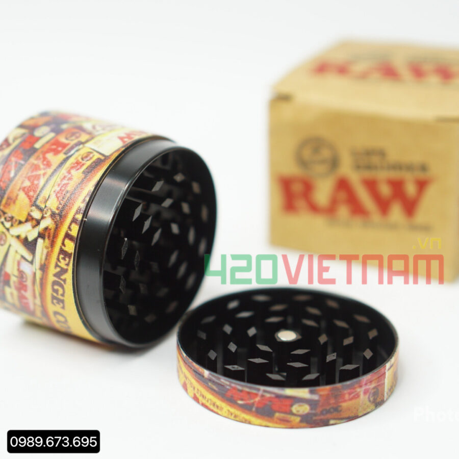 Cối Xay Raw Mix Rolling Grinders có 4 mảnh và 3 tầng, có răng hình kim cương để xay mịn và có ngăn cất giữ khi còn thừa thảo dược, đặc biệt nhỏ gọn có thể bỏ trong túi và luôn có sẵn hàng tại 420vietnam.