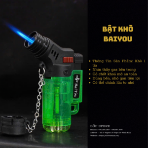 Bật lửa khò với lửa mạnh và nhiệt độ cao giúp đốt nhanh chóng, dễ dàng và hiệu quả. Sản phẩm này đặc biệt thích hợp cho việc đốt thuốc lá hoặc thảo mộc một cách nhanh gọn mà không cần phải mất nhiều thời gian chuẩn bị. Bật lửa khò có thiết kế gọn gàng, dễ cầm nắm, đồng thời rất an toàn khi sử dụng nhờ khóa bảo vệ đi kèm.