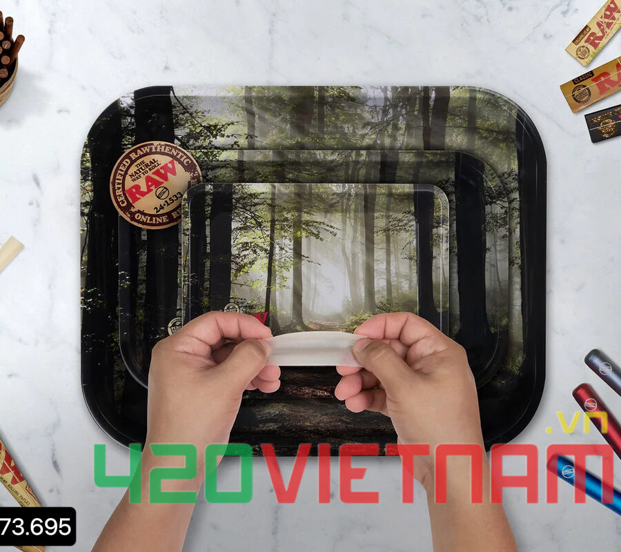 Khay Đựng Raw Metal Tray: Chất lượng cao này có hình ảnh rừng xanh nơi các chill thủ hay ghé thăm mỗi khi đêm về. Khay được làm bằng kim loại, màu sắc của khay được mix theo phong cách chillout làm tăng bầu không khí ma mị âm u cho các chill thủ.