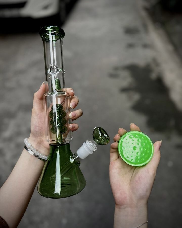 Boong Thủy Tinh Lá Cannabis Phản Quang
